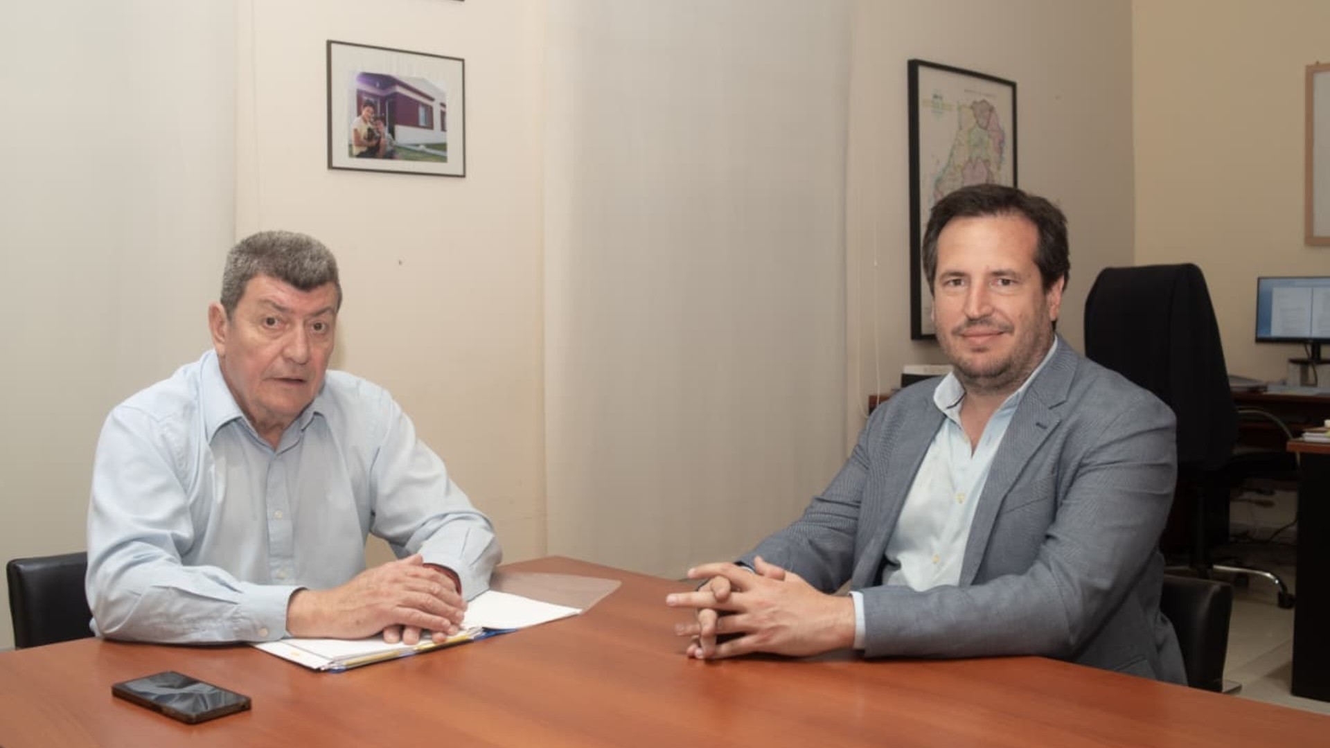 El presidente del Instituto Autárquico de Planeamiento y Vivienda (IAPV), Manuel Schönhals, mantuvo una reunión con el intendente de Larroque, Francisco Benedetti, donde se abordaron estrategias para fortalecer la política habitacional en la localidad en el marco del programa Ahora Tu Hogar..