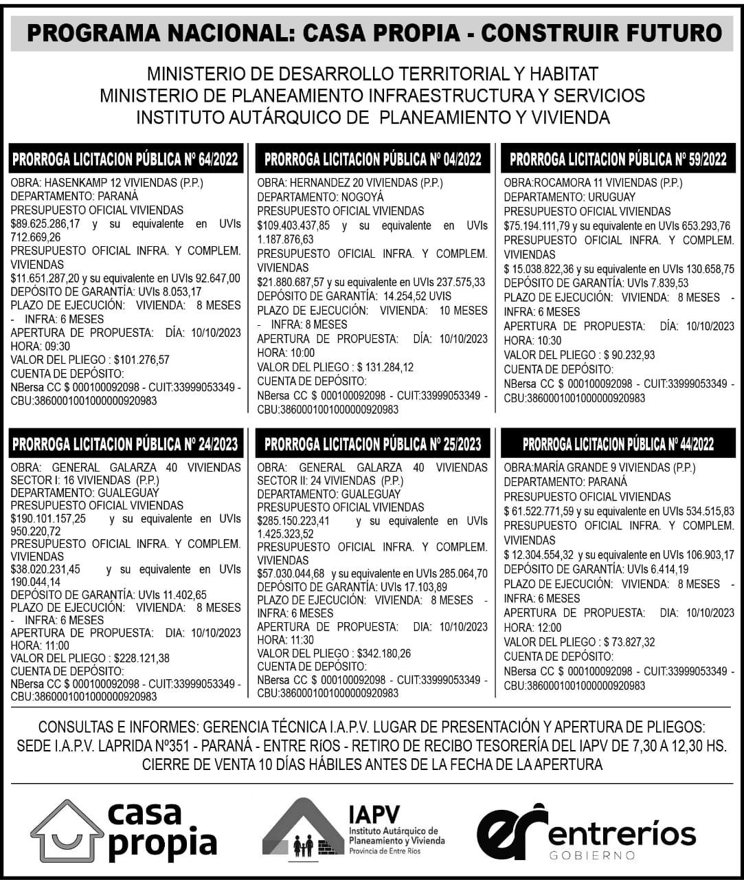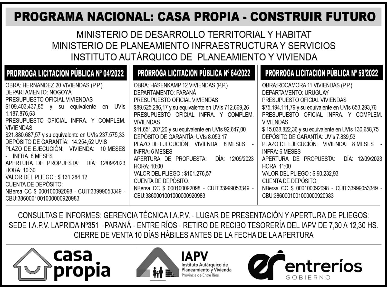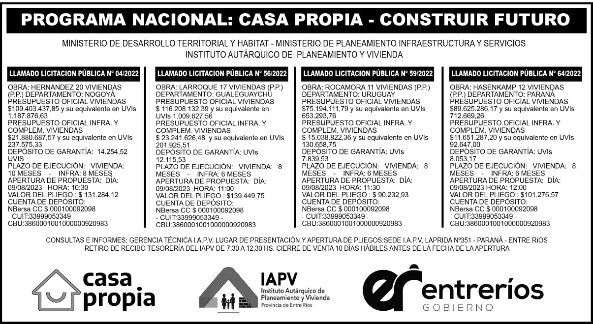 LICITACIÓN PÚBLICA N° 64/2022 - HASENKAMP 12 VIVIENDAS.