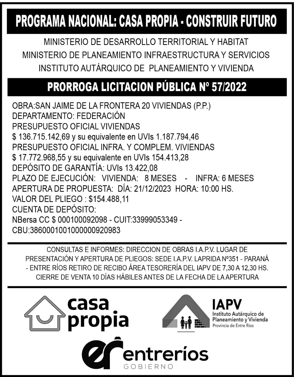 PRORROGA LICITACIÓN PÚBLICA N° 57/2022.