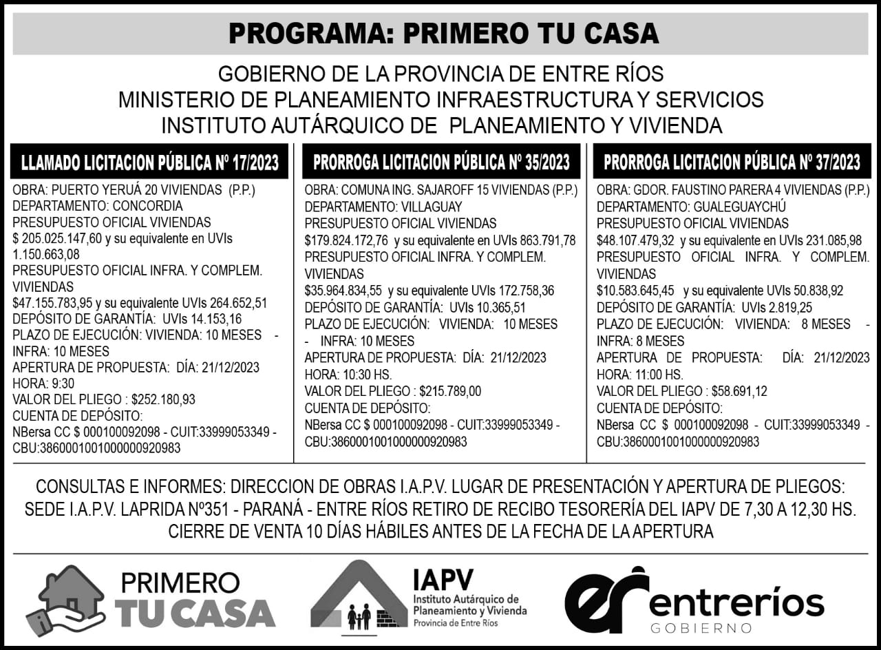 PRORROGA LICITACIÓN PÚBLICA N° 35/2023.