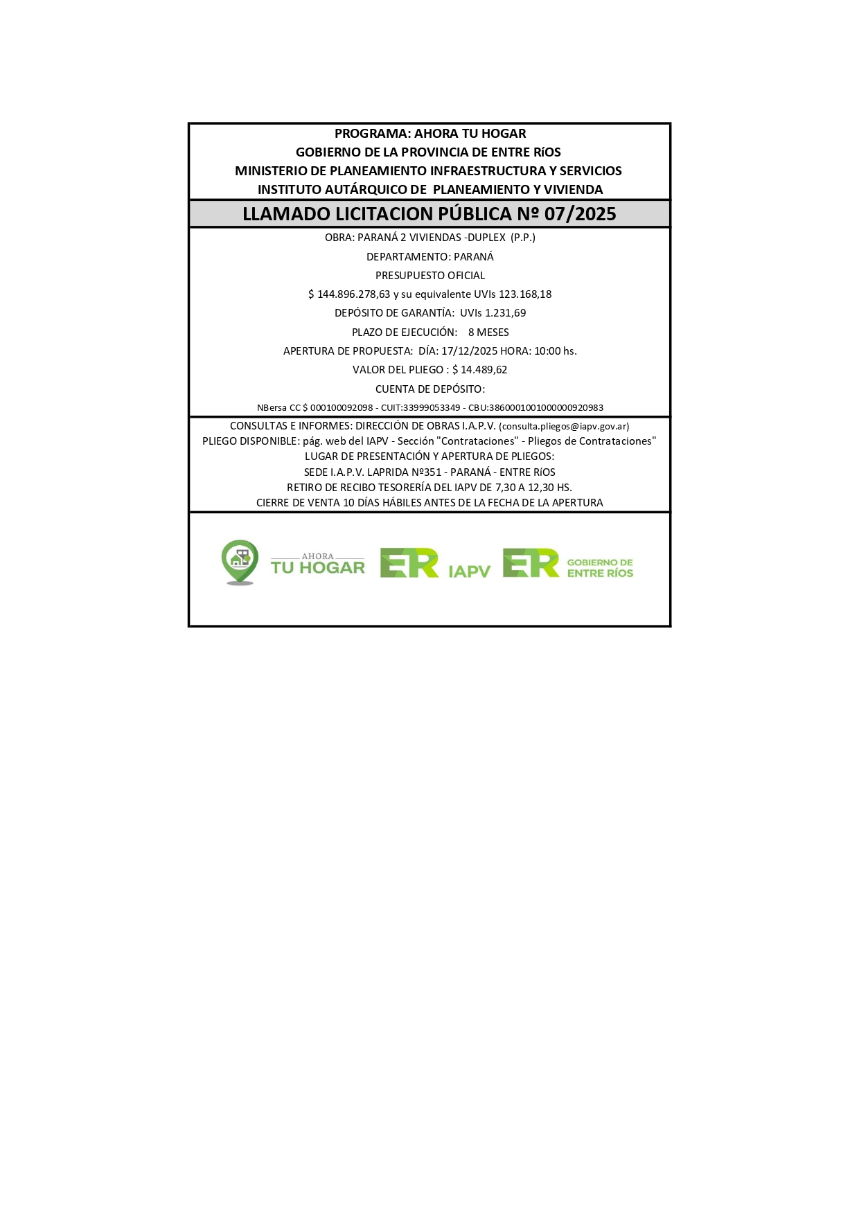 OBRA: PARANÁ 2 VIVIENDAS - PROTOTIPO DUPLEX 2 DORMITORIOS.