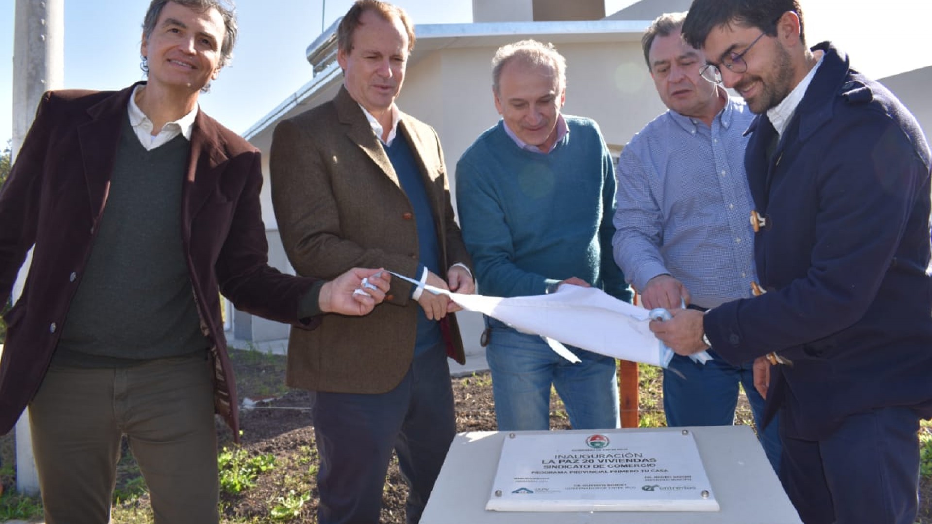Respecto a las 20 viviendas inauguradas, están destinadas al Sindicato de Comercio en la localidad de La Paz. Se construyeron en el marco del Programa Primero tu Casa, del gobierno provincial, a través del Instituto Autárquico de Planeamiento y Viviendas.