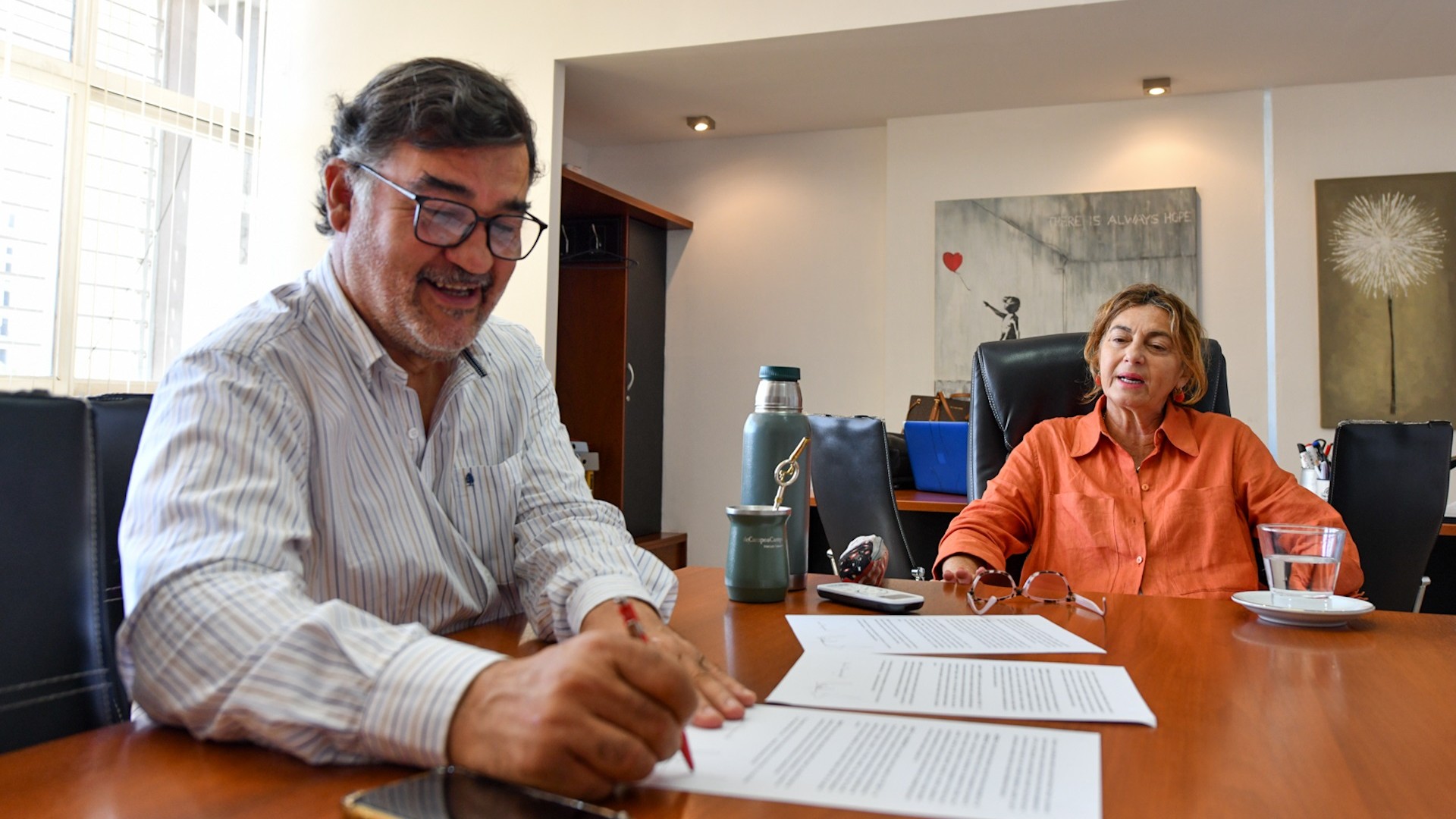 La firma se llevó a cabo en el CGE con la presencia del vicepresidente del IAPV, Luis Antonio Uriona, y la coordinadora del Consejo Provincial de Educación Trabajo y Producción de la Provincia de Entre Ríos (Copetyper), Andrea Larrea.