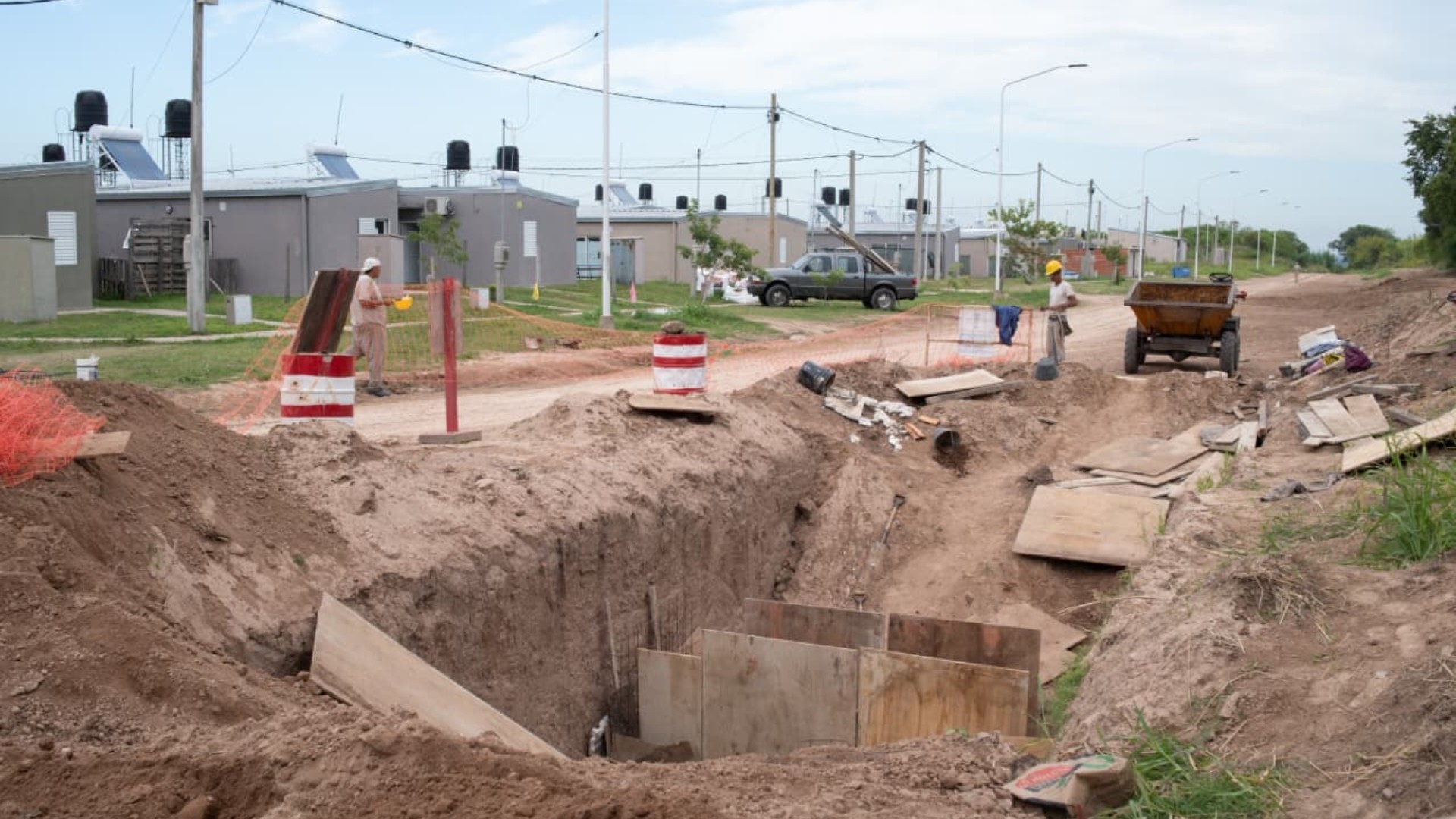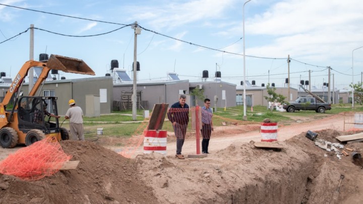 En este sector, el IAPV lleva adelante una importante obra de infraestructura vial que comprende una significativa inversión en desagües pluviales subterráneos, con la colocación de tubos de hormigón de distintos diámetros, con el objetivo de mejorar el escurrimiento del agua y optimizar las condiciones urbanas del barrio.